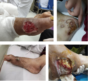 病情:全身多处巨大痛风石且破溃,已无法行走。